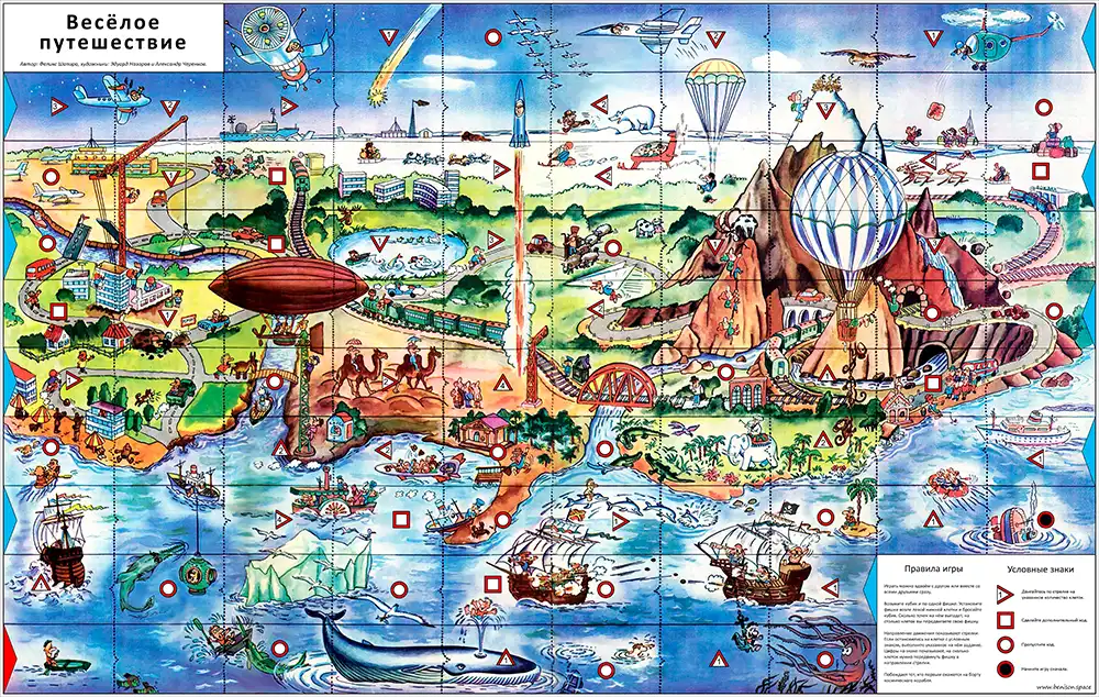 Автором этой замечательной игры является талантливый Феликс Шапиро, который сумел создать маршрут, захватывающий воображение детей уже более 35 лет. Художественное оформление выполнили выдающиеся художники Эдуард Назаров и Александр Черенков, наполнив каждую клетку поля яркими деталями и незабываемыми персонажами.