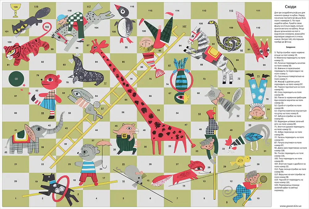 Ніяких складних інструкцій! Механіка гри максимально проста: гравці по черзі кидають кубик і пересувають свої фішки вперед на відповідну кількість кроків. На деяких полях чекають сюрпризи – можна перескочити кілька клітинок уперед або повернутися трохи назад. Хто першим фінішує – той отримує золотий кубок переможця!