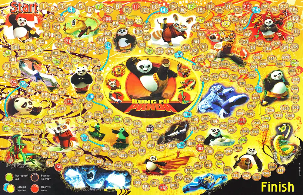 Механіка гри максимально проста та зрозуміла навіть наймолодшим гравцям. Кидай кубик, переміщуй фішку, виконуй завдання – і насолоджуйся пригодами в стилі Кунг-фу!