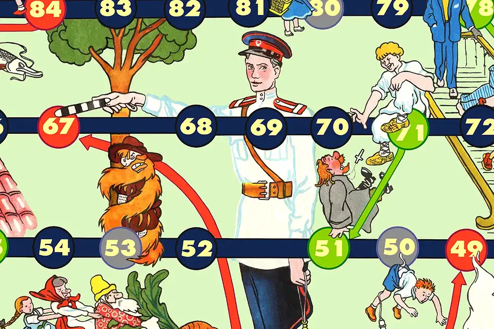 Уявіть собі настільну гру, де на одному ігровому полі зустрічаються персонажі з різних епох і казок! Настільна гра “Дядько Степан” – це яскрава мозаїка дитячих спогадів, де величний міліціонер дядько Степан стоїть пліч-о-пліч із хитрим Іванком-дурником та його вірним коником-горбунком, де мандрівник Нільс летить на гусі повз старого Хоттабича, а три розумні поросята ховаються від вовка неподалік від Федори, від якої втік увесь посуд.