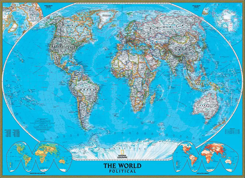 Політична карта світу від National Geographic – це високоякісна карта, яка надає детальне та актуальне уявлення про політичну географію нашої планети. Ця карта є ідеальним інструментом для вивчення та дослідження географічного розподілу країн, столиць, кордонів та географічних особливостей різних регіонів світу.
